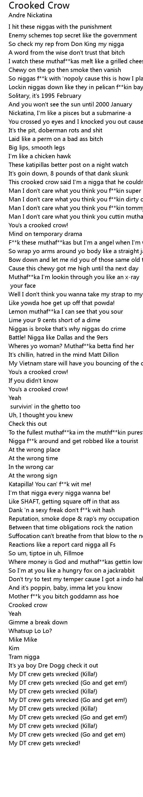 This crooked crow said I'm a nigga that he couldn't trust |