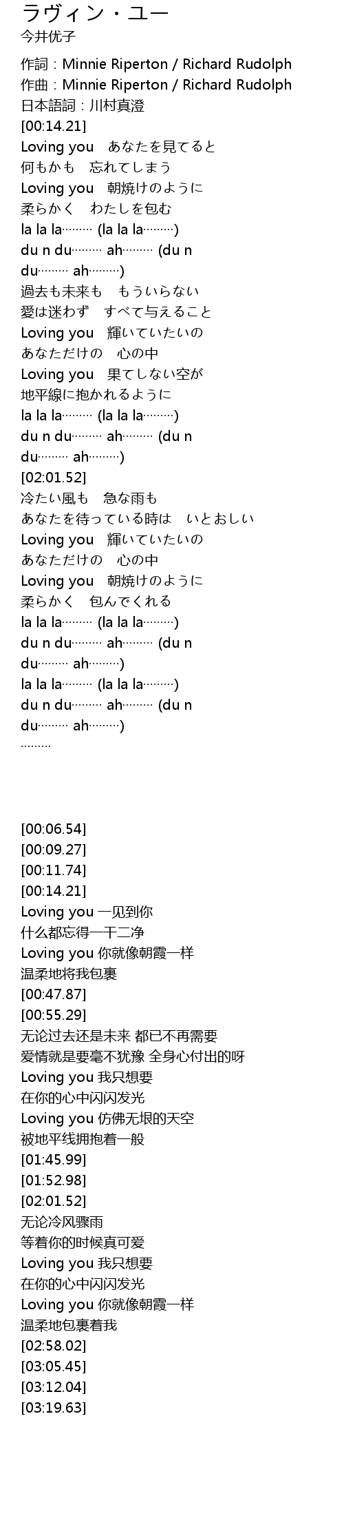 | [00:06.54] | 作詞:Minnie Riperton / Richard Rudolph |