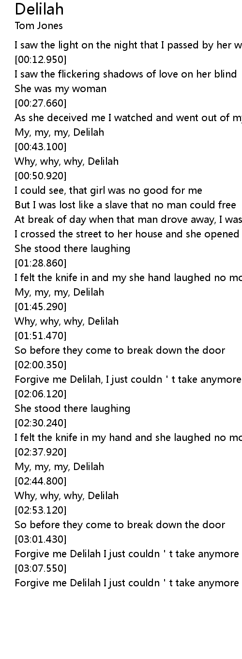 | [03:09.550] | Forgive me Delilah I just couldn't take anymore |