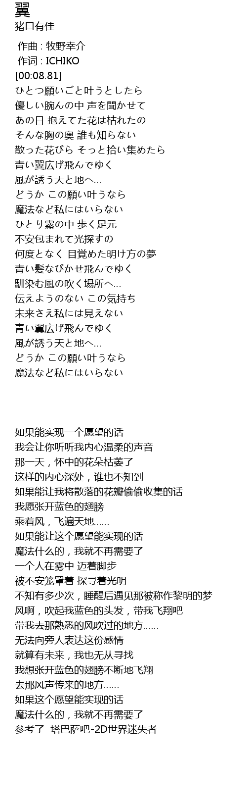 | [03:12.51] | 青い翼広げ飛んでゆく |