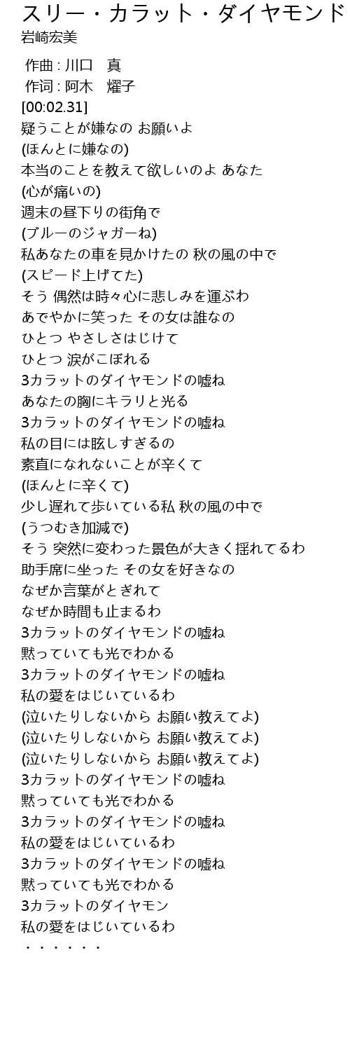 | [02:14.74] | 3カラットのダイヤモンドの嘘ね |