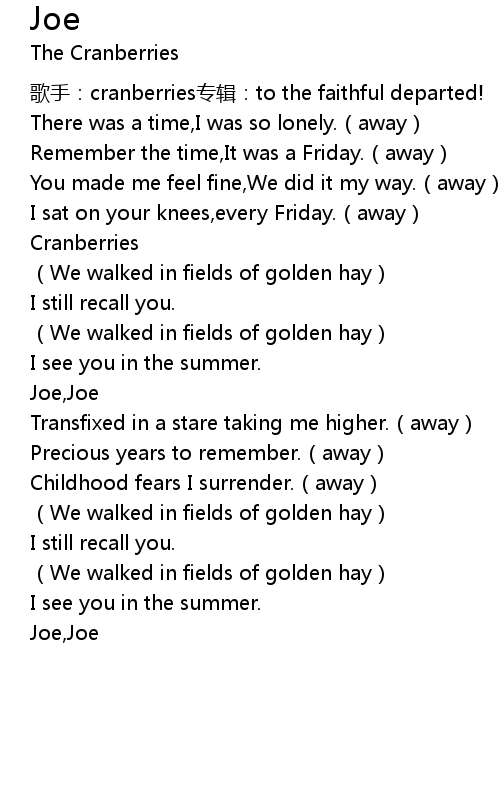 | [00:01.70] | ge shou: cranberries zhuan ji: to the faithful departed! |