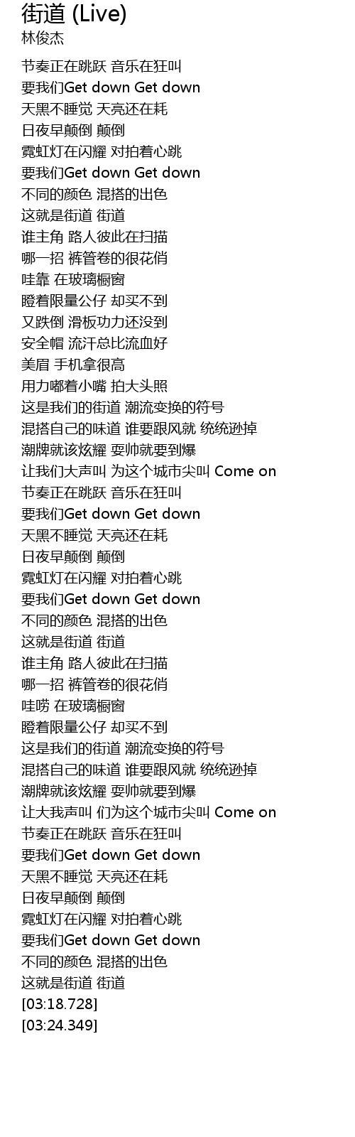 | [02:32.749] | 这是我们的街道 潮流变换的符号 |