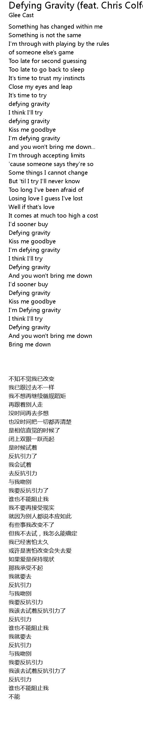 Defying Gravity (feat. Chris Colfer & Lea Michele) Lyrics