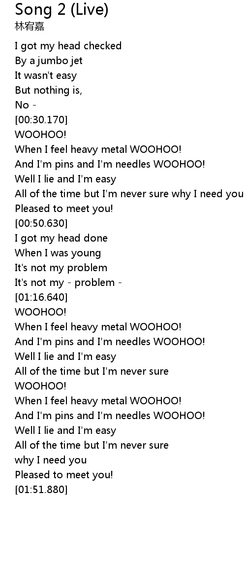 | [01:33.960] | When I feel heavy metal WOOHOO! |