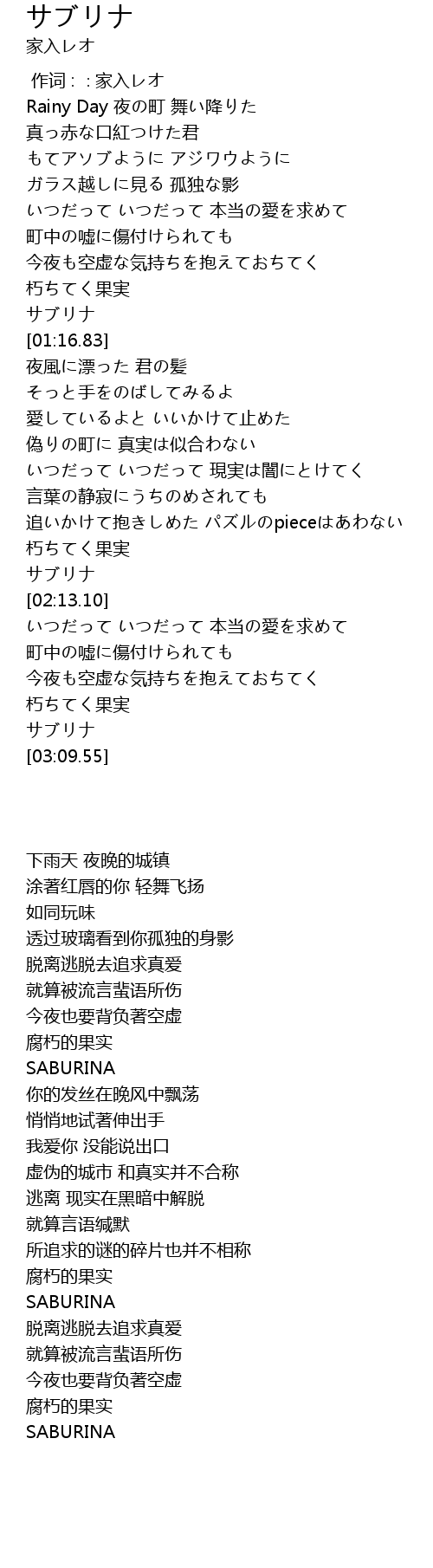 | [00:00.00] | 作词 : ∶家入レオ |