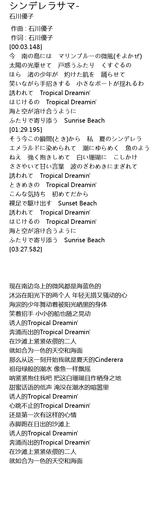 | [02:58.586] | 誘われて Tropical Dreamin' |
