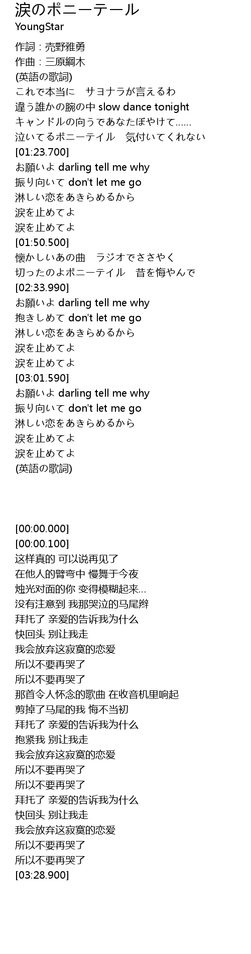 | [02:23.500] | 切ったのよポニーテイル 昔を悔やんで |