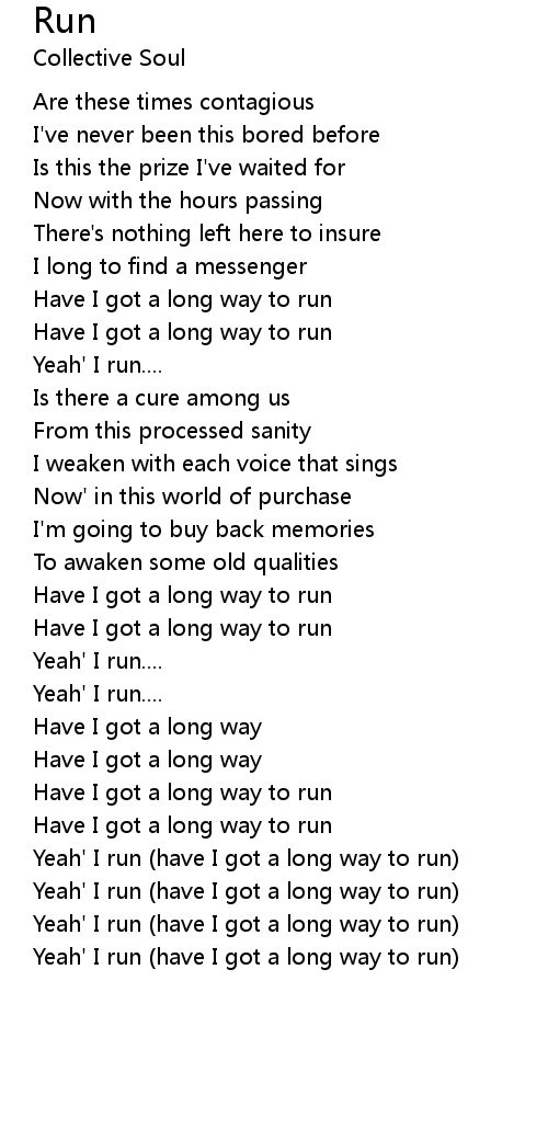 Yeah' I run (have I got a long way to run) |