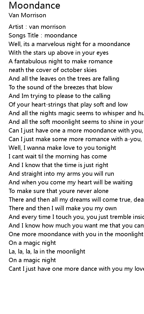 | Can I just have one a more moondance with you, my love | |