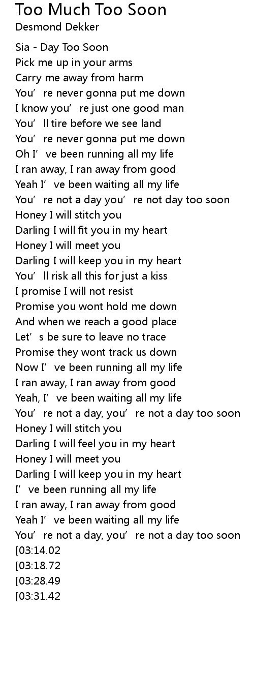 | [00:59.79] | You’re not a day you’re not day too soon |