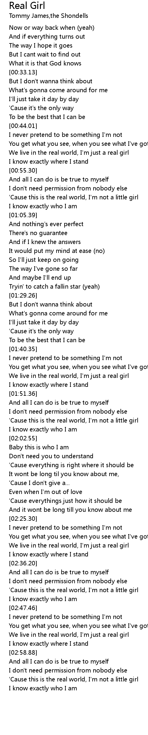 We live in the real world, I'm just a real girl |