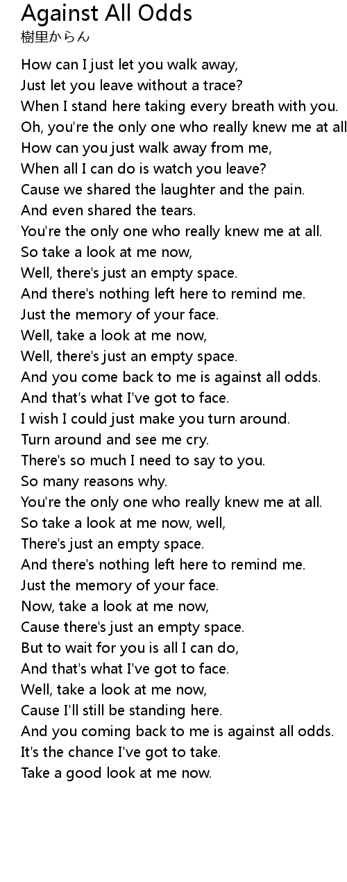 And you come back to me is against all odds. |