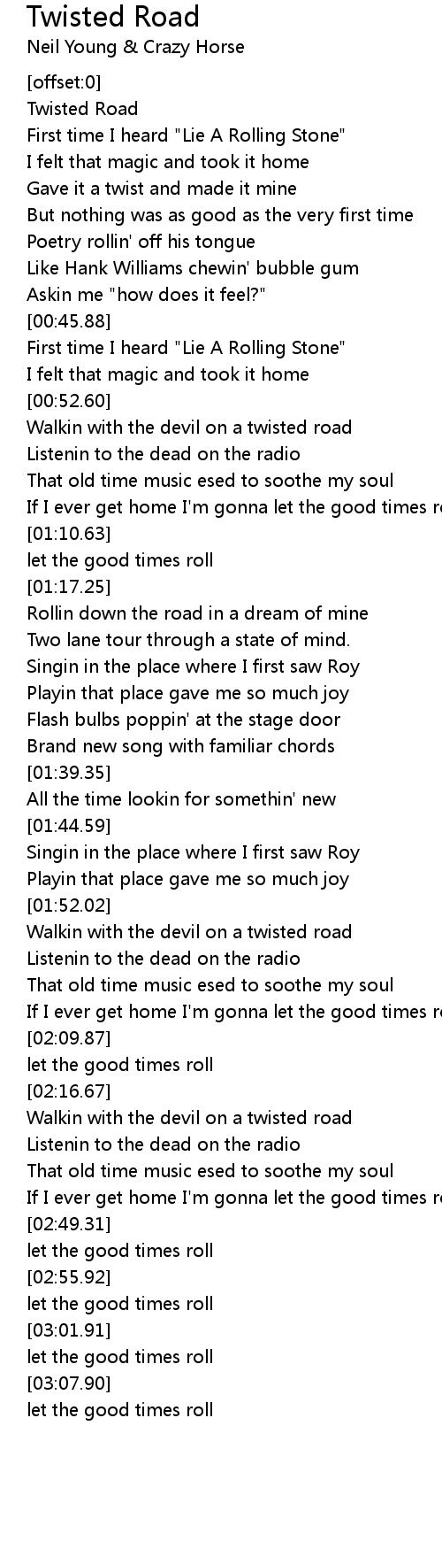 Walkin with the devil on a twisted road |