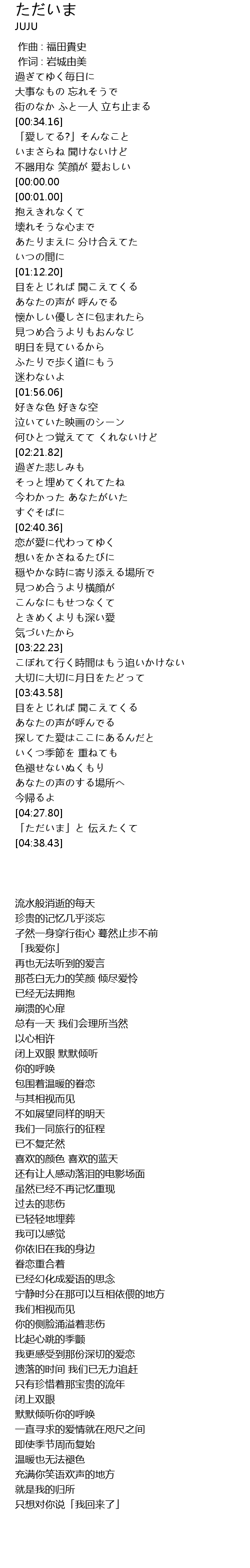| [04:28.23] | 「ただいま」と 伝えたくて |