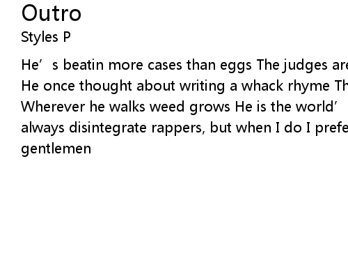 | He' s beatin more cases than eggs The judges aren' t man enough to judge him He once thought about writing a whack rhyme Then removed that part of his brain Wherever he walks weed grows He is the world' s most hardest emcee I don' t always disintegrate rappers, but when I do I prefer hard bars Stay gangsta my gentlemen |