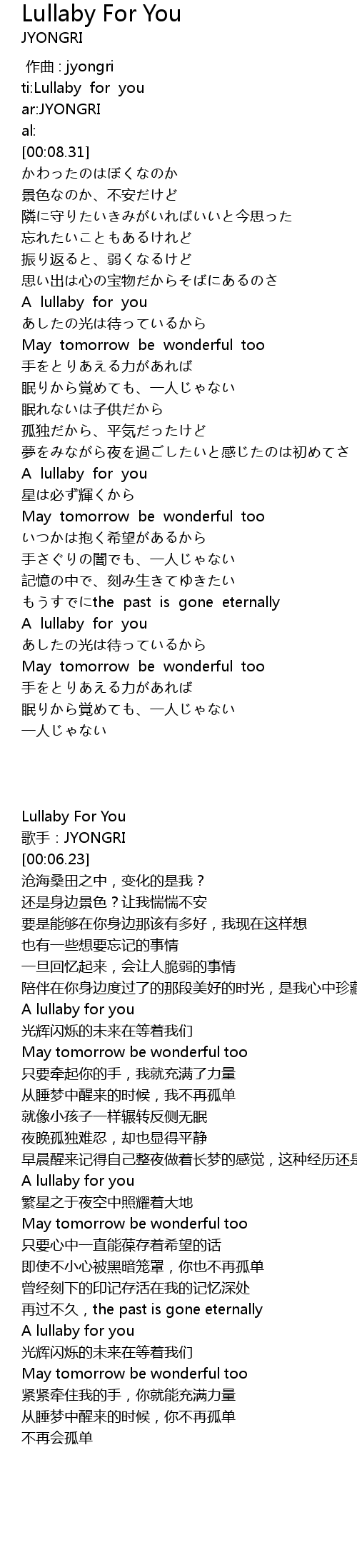 | [02:38.29] | A lullaby for you |