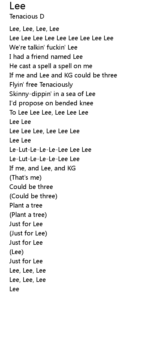 To Lee Lee Lee, Lee Lee Lee |