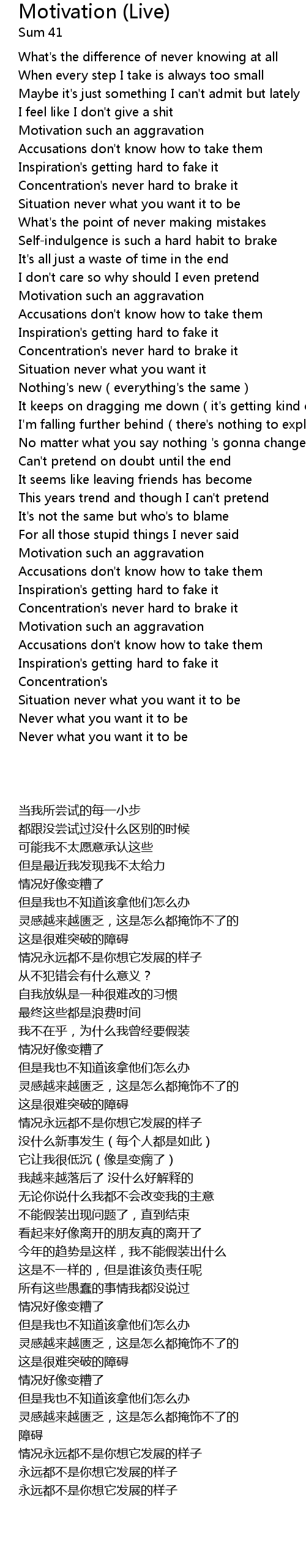 | [01:33.34] | Motivation such an aggravation |