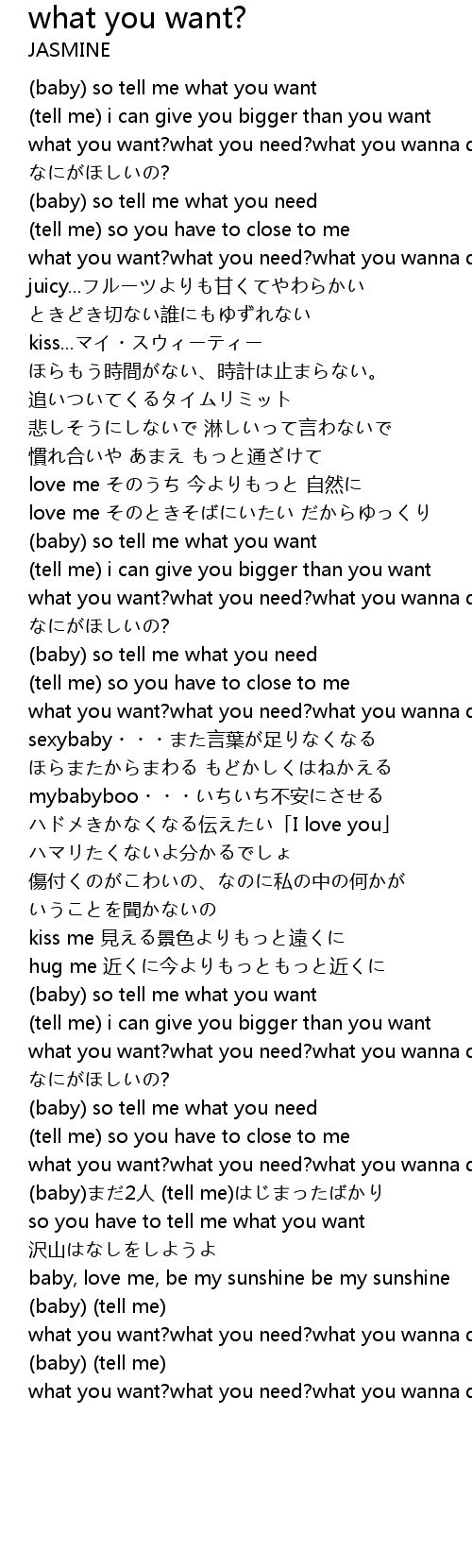 | baby so tell me what you want | |