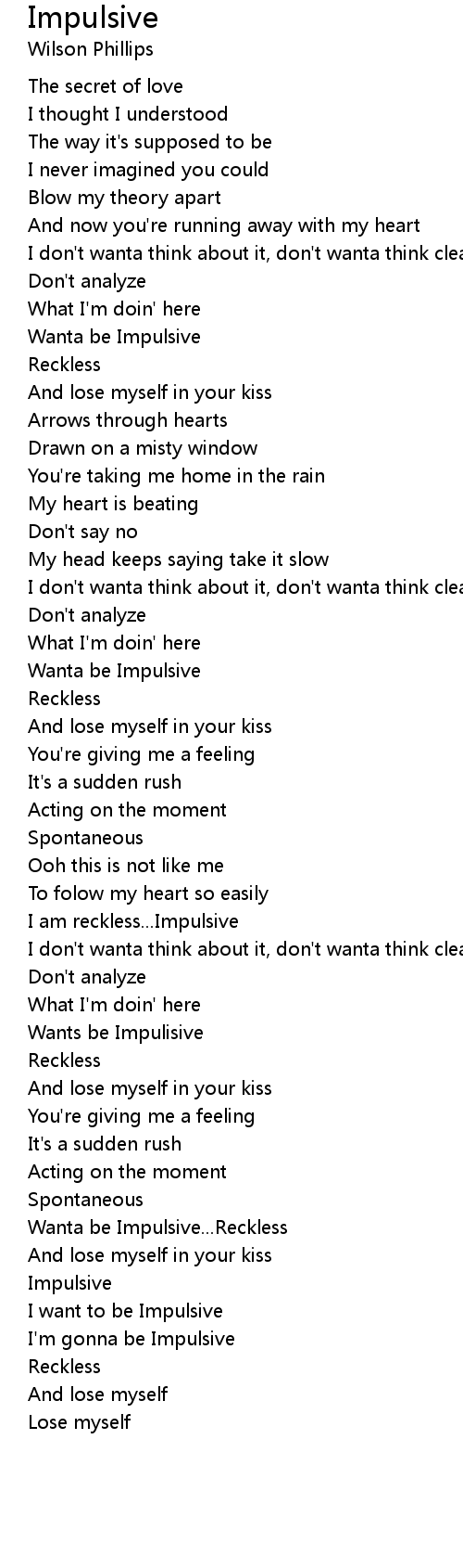 Wanta be Impulsive...Reckless |