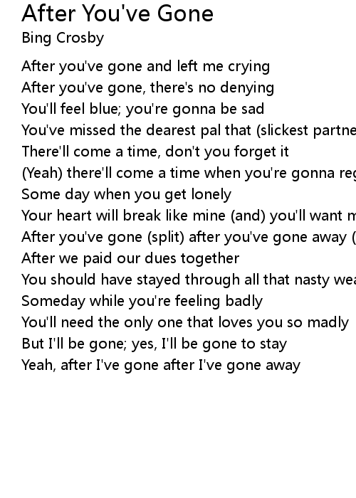 After you've gone (split) after you've gone away (flown the coop) |