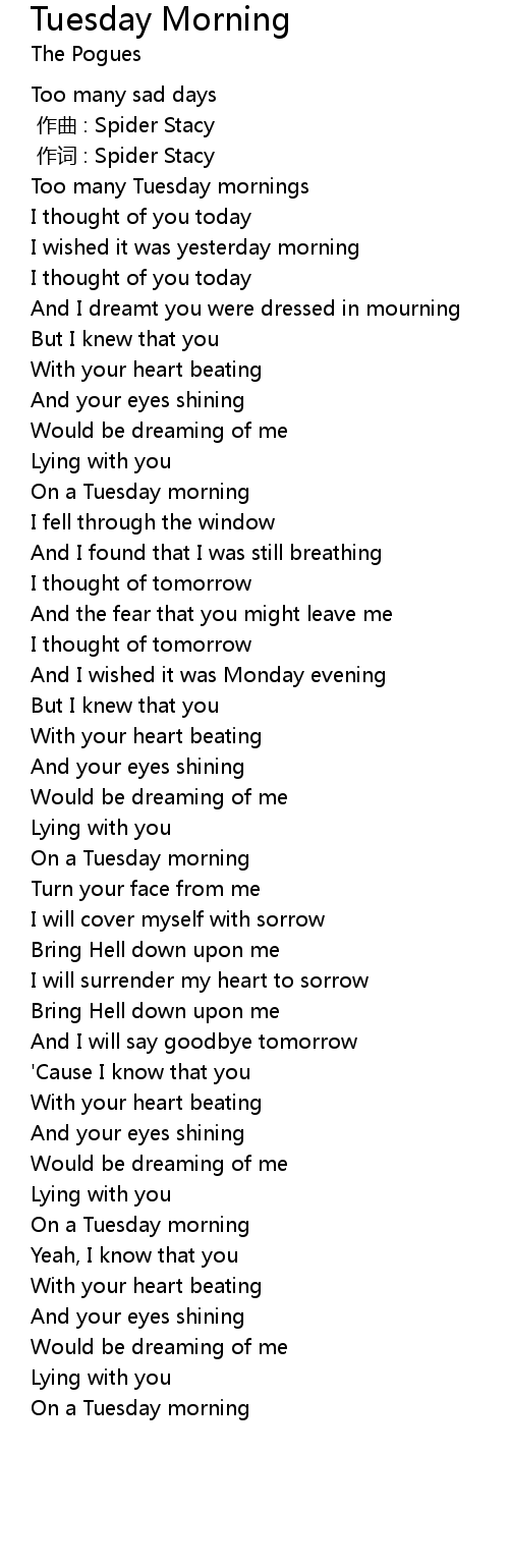 | [02:49.86] | On a Tuesday morning |