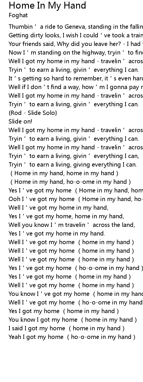 | Well I've got my home (ho-o-ome in my hand) | |
