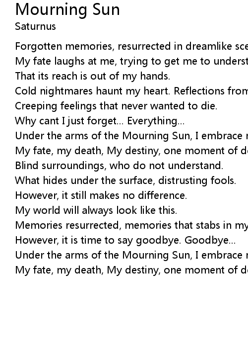 Under the arms of the Mourning Sun, I embrace my fate. |
