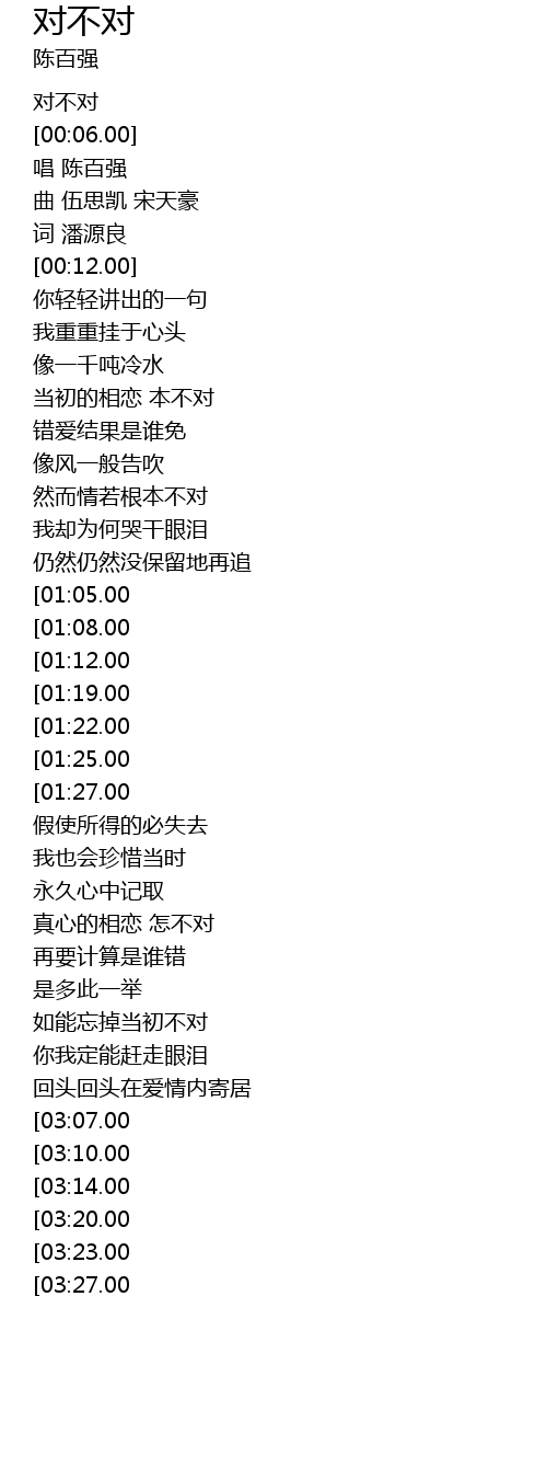 | [03:54.00][03:27.00] | shǐ zhōng dōu xiāng duì duì bú duì |