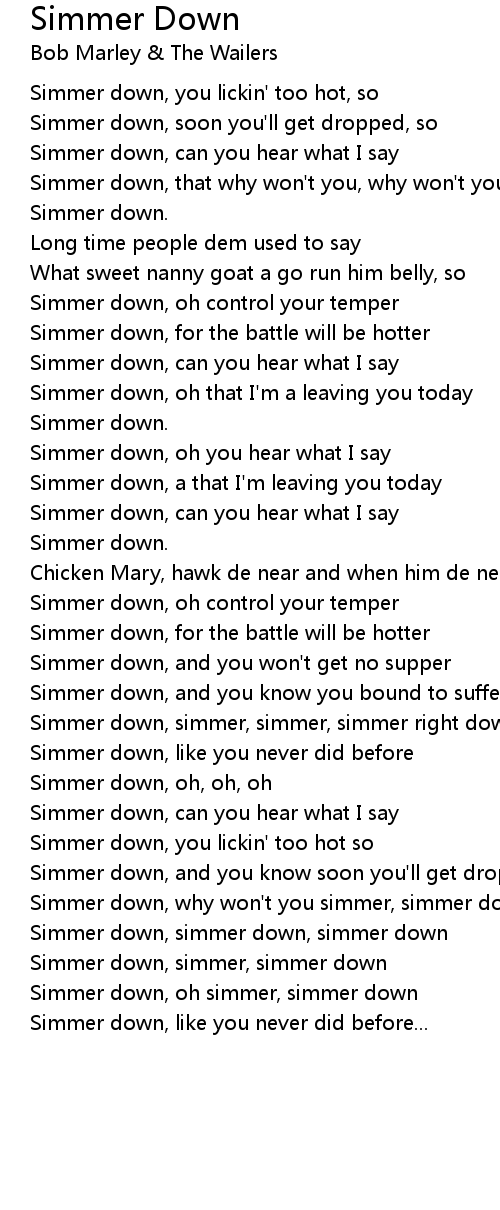 Simmer down, that why won't you, why won't you, why won't you simmer down |