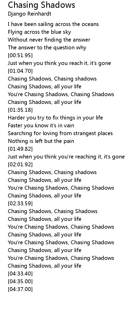 You're Chasing Shadows, Chasing Shadows |