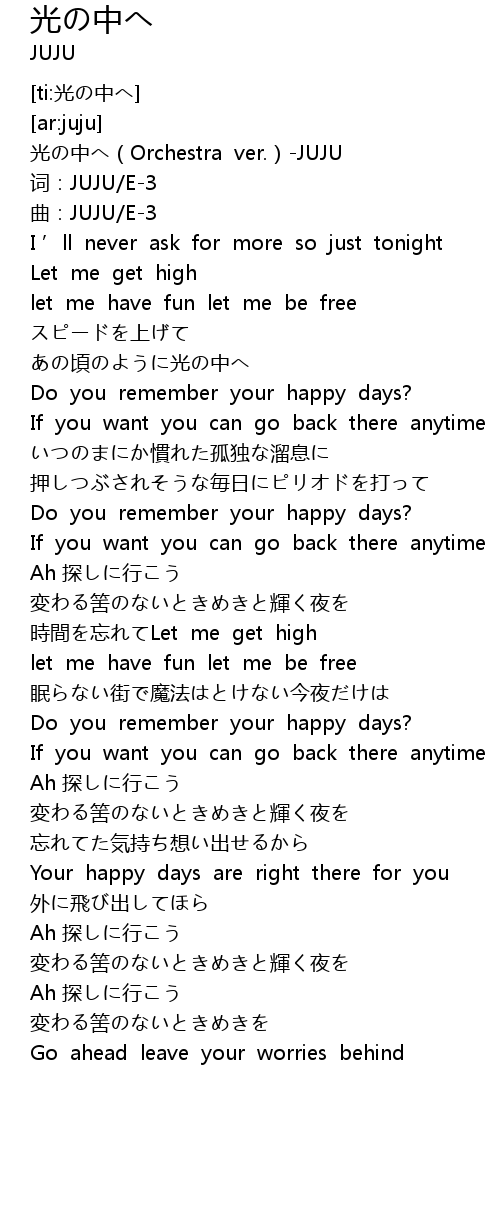 | [00:01.532] | 光の中へ(Orchestra ver.)-JUJU |