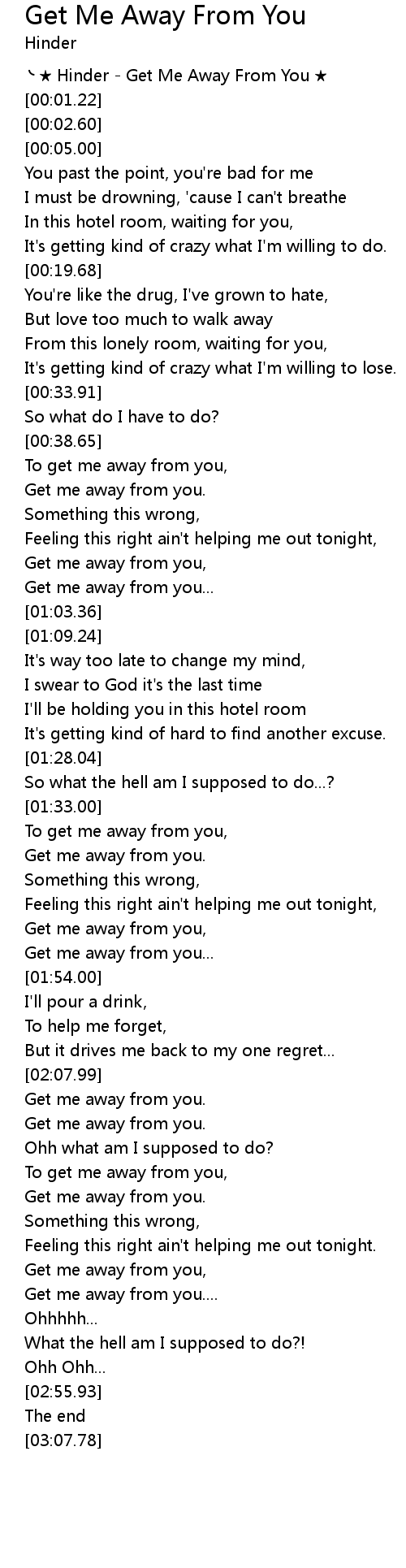 | [00:00.00] | Hinder Get Me Away From You |