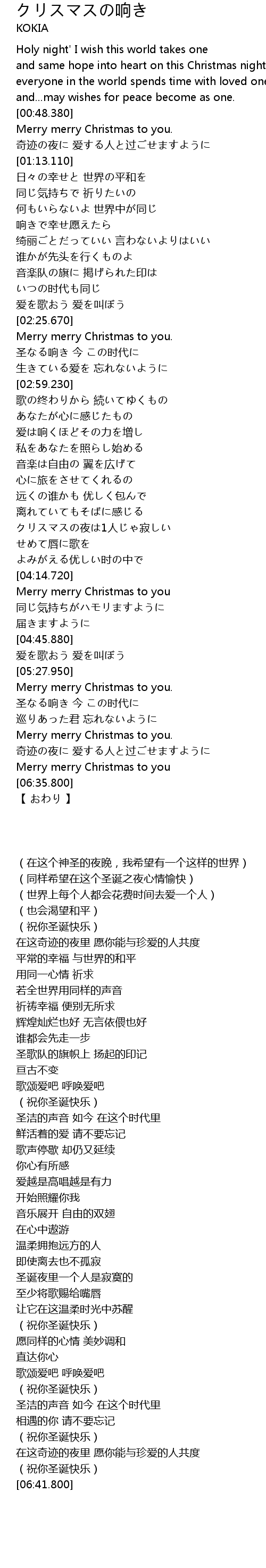 | [06:04.180] | 奇迹の夜に 爱する人と过ごせますように |