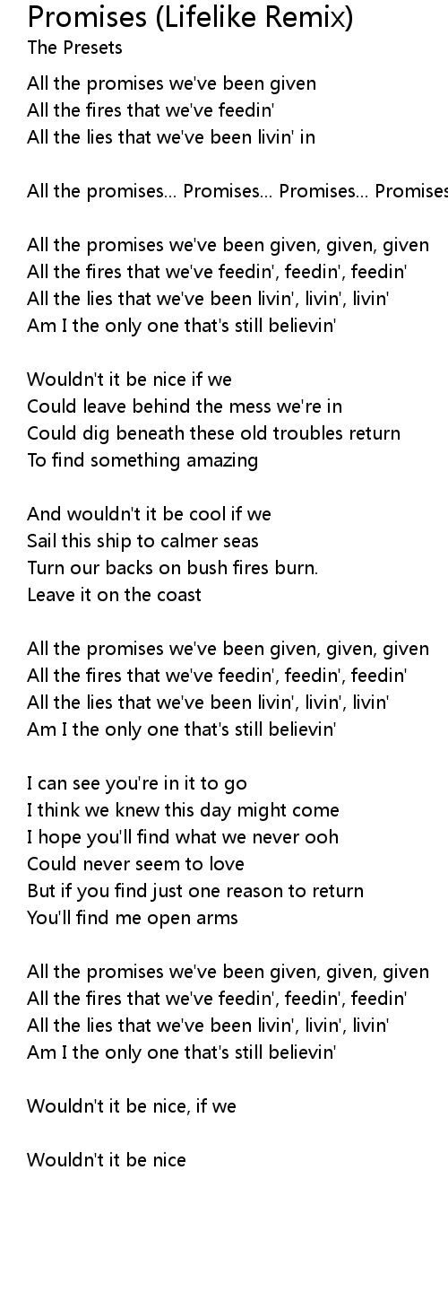 All the promises... Promises... Promises... Promises... Promises... Promises |
