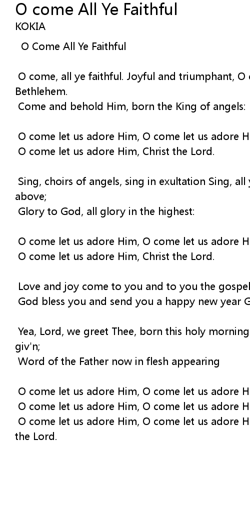 O come, all ye faithful. Joyful and triumphant, O come ye, O come ye to Bethlehem. |