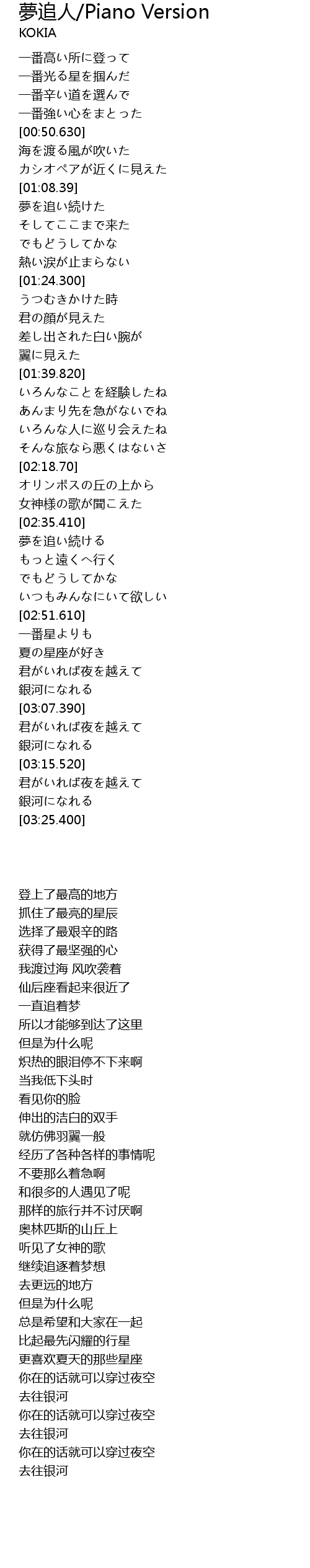 meng zhui ren Piano Version Lyrics