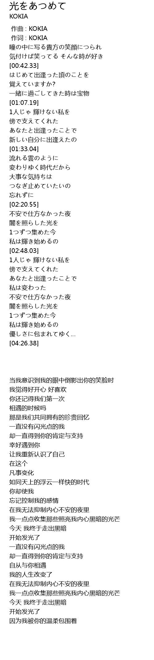 | [00:00.00] | 作曲 : KOKIA |