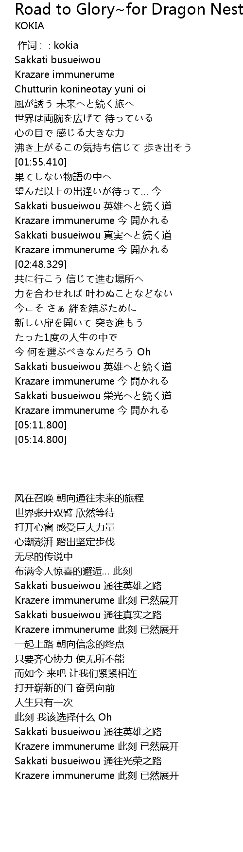 | [02:13.190] | Sakkati busueiwou 英雄へと続く道 |
