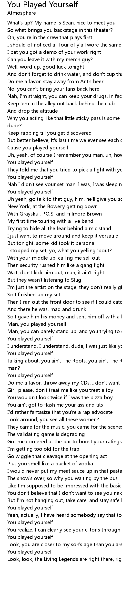 Do me a favor, throw away my CDs, I don't want no stupid fans