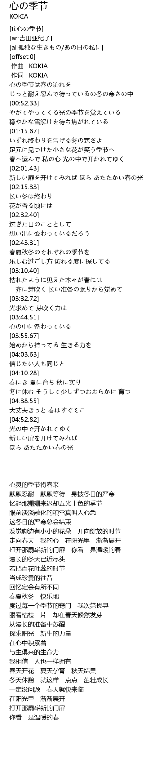 | [04:22.88] | 冬に休む そうして少しずつおおらかに 育つ |