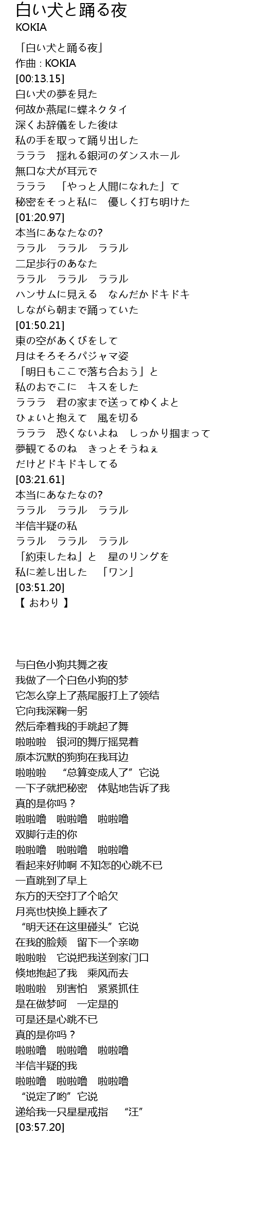 「白い犬と踊る夜」 |