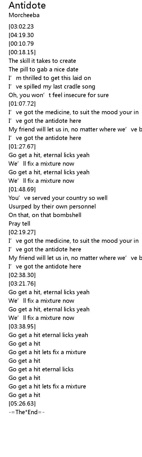 | [04:20.52][03:02.23][00:00.98] | -= Morcheeba 《 Antidote 》=- |