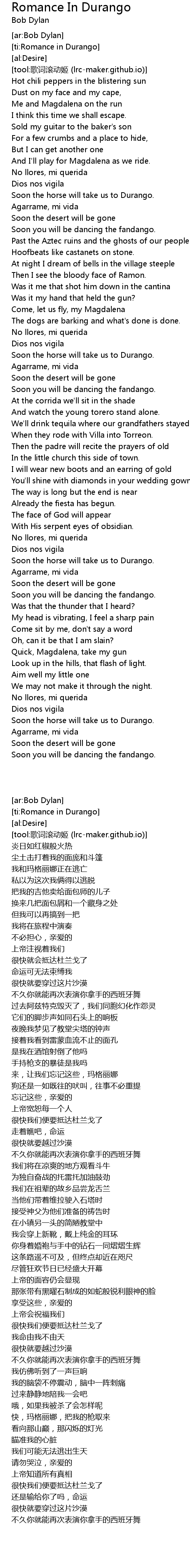 | [01:09.465] | Soon the horse will take us to Durango. |