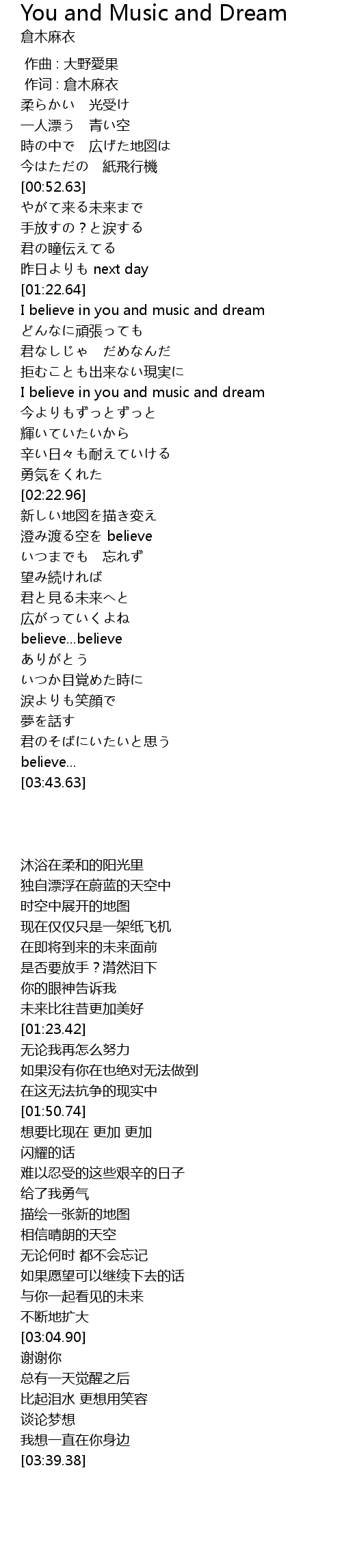 | [00:01.00] | 作词 : 倉木麻衣 |