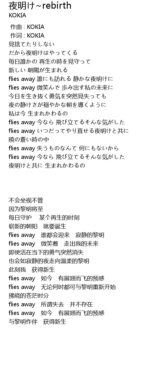 | [00:56.290] | flies away 誰にも訪れる 静かな夜明けに |
