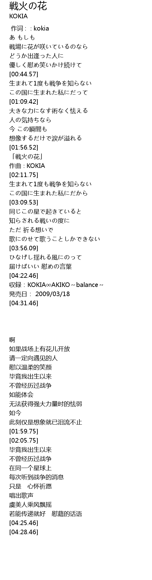 | [00:11.59] | 戦場に花が咲いているのなら |