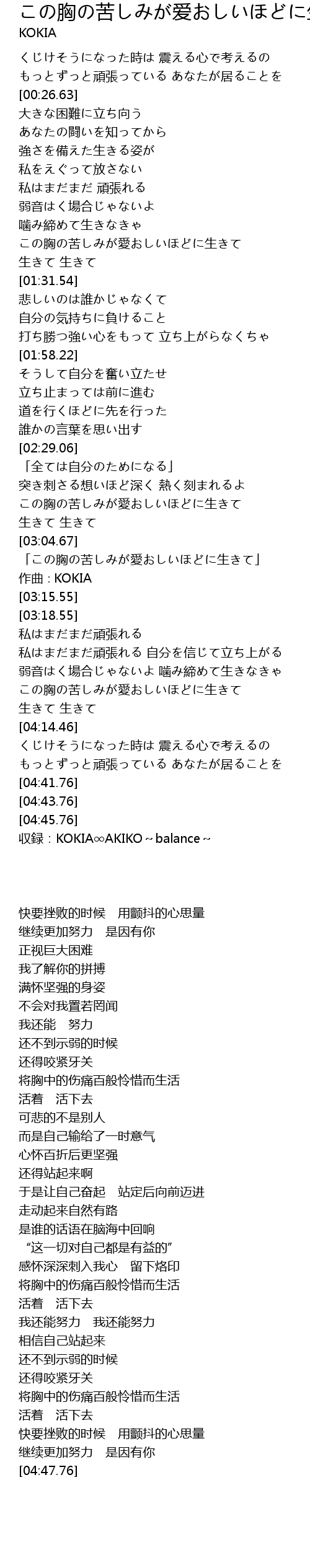 | [03:06.55] | 「この胸の苦しみが愛おしいほどに生きて」 |
