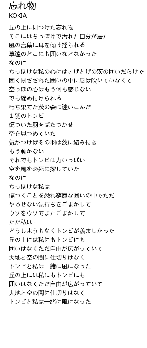 | Song | 忘れ物 |
